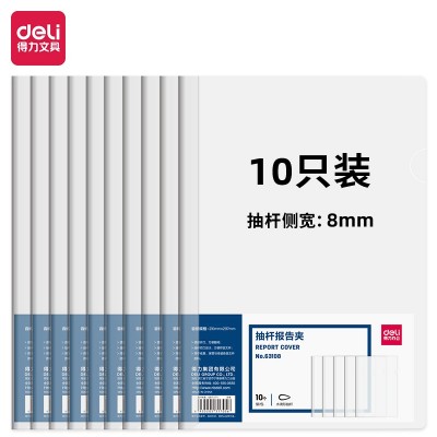 首页 > 办公用品 > 文具 > 得力63108-抽杆报告夹(透明)(10个/包)