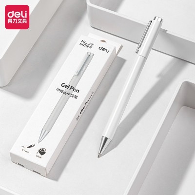 得力NS650 中性笔0.5mm子弹头(笔壳岸沙白/黑)(1支/盒)