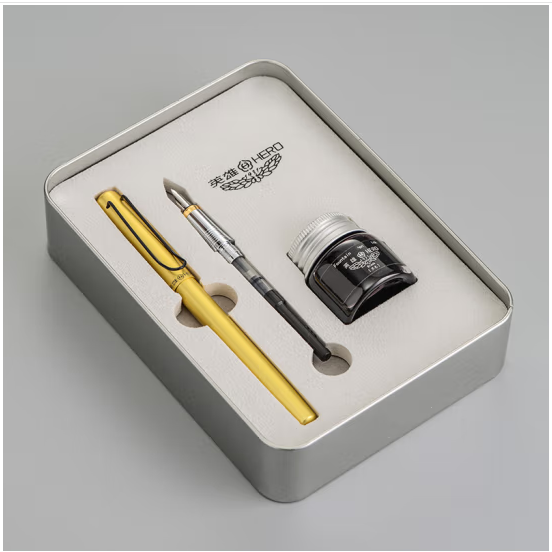 英雄(HERO)钢笔466 金色 男女商务个性办公签字笔钢笔组合墨水套装 (zhyghf_23099521)SKU:yzwhyp884564