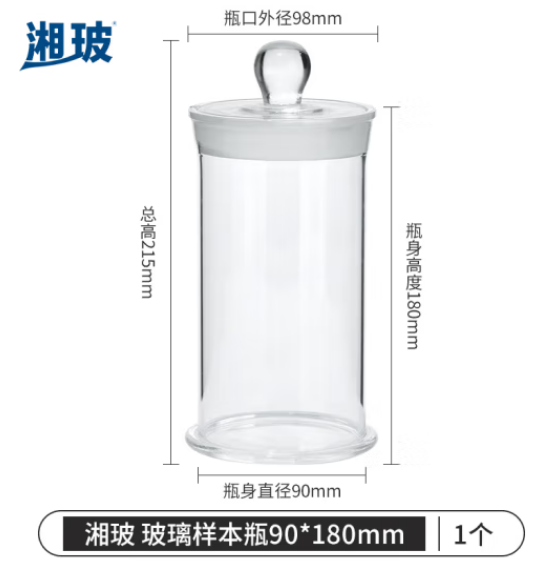 首页 > 仪器仪表 > 生物、医学样品制备设备 > 比克曼生物 湘玻 玻璃标本瓶高硼硅展示瓶样品瓶实验瓶广口磨砂动植物加厚病理标本缸玻璃罐【90*180mm】1个 (zhyghf_221722089)SKU:yzwhyp884629