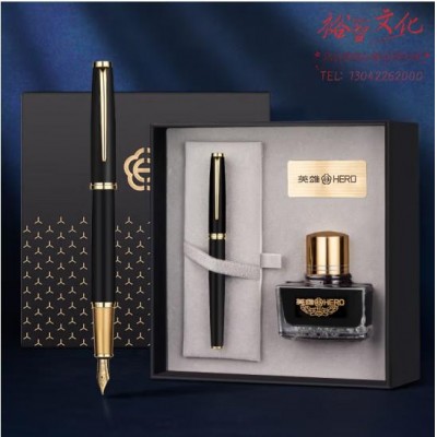 英雄(HERO)H652钢笔礼盒年会奖品 荣耀系列 商务送礼日常书写男女办公签字笔墨水套装 黑砂 (zhyghf_23099584)SKU:yzwhyp884654