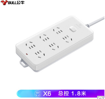 公牛 GN-109K-1.8米 电源插座 1控6位(六个三项)白色 10ASKU:yzwhyp884729