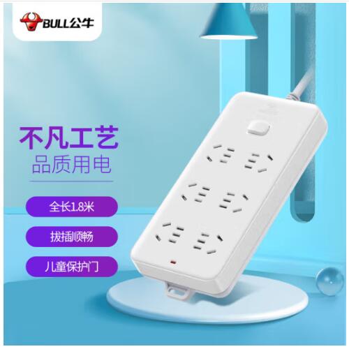 公牛(BULL)新国标插座/插线板/插排/排插/接线板/拖线板 6位总控全长1.8米 GN-109KSKU:yzwhyp884778
