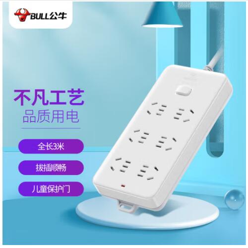 公牛(BULL) 新国标插座/插线板/插排/排插/接线板/拖线板 6位总控全长3米 GN-109KSKU:yzwhyp884779