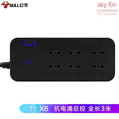 公牛(BULL)抗电涌抗浪涌 接线板/拖线板 6位总控全长3米 保护智能电器 GN-H3060 10ASKU:yzwhyp884789