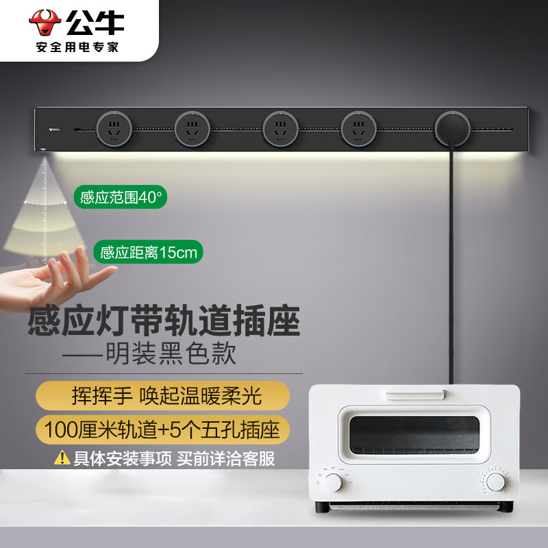 公牛(BULL)明装 灯带轨道插座 可移动墙壁插座壁挂式100厘米轨道 5个五孔插座黑色 (zhyghf_221711810)SKU:yzwhyp884887