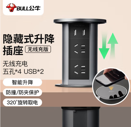 首页 > 建筑建材 > 开关插座 > 公牛(BULL)无线充 电动智能升降/隐藏式/嵌入式/多功能插座 4位五孔 2USB 10W感应充电 黑色 (zhyghf_221711812)SKU:yzwhyp884889