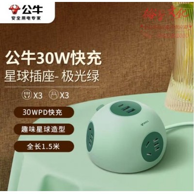 首页 > 建筑建材 > 开关插座 > 公牛(BULL)30W PD快充星球星际插座/插线板/插排/排插/拖线板 半球型 3个五孔 3个USB GNV-U1303Q 极光绿 (zhyghf_221711961)SKU:yzwhyp884947