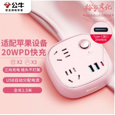首页 > 建筑建材 > 开关插座 > 公牛(BULL)20W PD苹果快充插座/插线板/插排/排插/拖线板 复古插座 3usb 2位五孔全长1.5米 GN-R602KQ 樱花粉 (zhyghf_221711967)SKU:yzwhyp884953