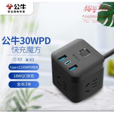 首页 > 建筑建材 > 开关插座 > 公牛(BULL)30WPD苹果快充魔方插座/插线板/插排/接线板 Type-c口 USB口 3插孔 全长3米黑色 GNV-UU2303H (zhyghf_221711973)SKU:yzwhyp884959