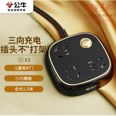 公牛(BULL)GN-R6030 骑士黑 复古插座 3位总控 全长1.5米 (zhyghf_221712080)SKU:yzwhyp885012