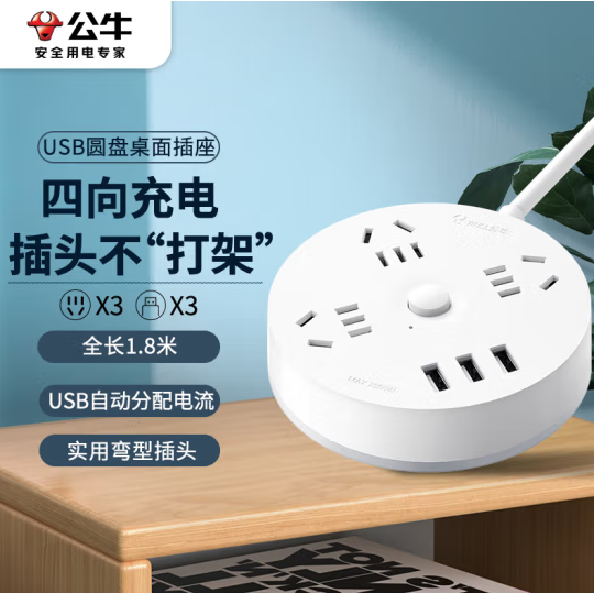 首页 > 建筑建材 > 开关插座 > 公牛(BULL)GN-R203U 全长1.8米 3usb接口 3孔总控 圆形插座/插线板/插排/排插/拖线板 (zhyghf_221712091)SKU:yzwhyp885020