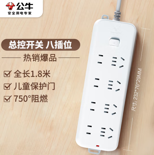 首页 > 建筑建材 > 开关插座 > 公牛(BULL)插座/插线板/插排/排插/接线板/拖线板 8位总控全长1.8米 GN-B3440 (zhyghf_221712136)SKU:yzwhyp885042