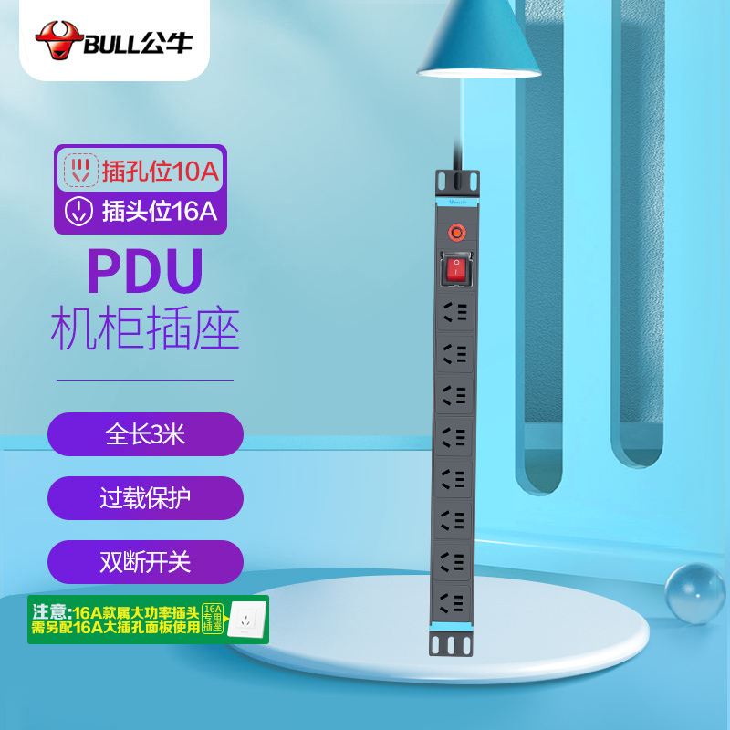 首页 > 建筑建材 > 开关插座 > 公牛(BULL)过载保护五孔PDU机柜插座/插线板/插排/排插/接线板/拖线板 8位总控带16A插头全长3米 GNE-2(0001)SKU:yzwhyp885064
