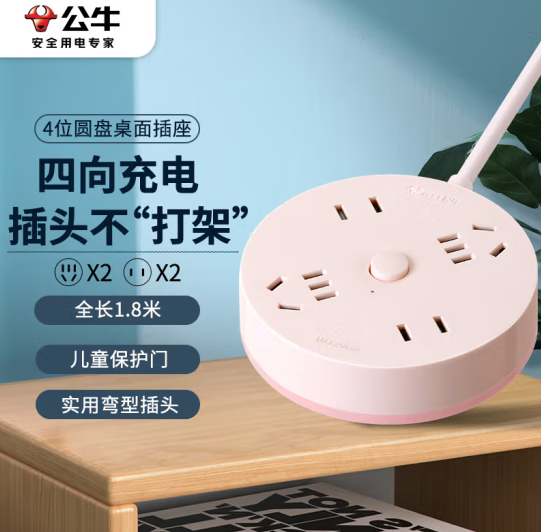 首页 > 建筑建材 > 开关插座 > 公牛(BULL)插座/插线板/插排/排插/拖线板 圆形插座4位总控 全长1.8米茱萸粉 GN-R2220 (zhyghf_221712164)SKU:yzwhyp885098