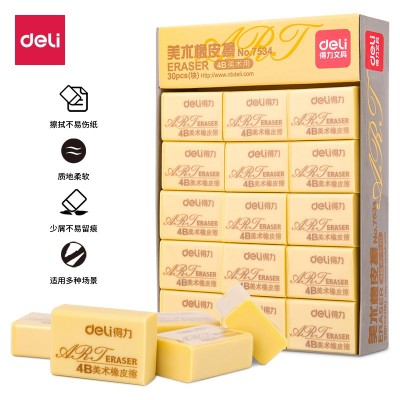 首页 > 办公用品 > 文具 > 得力(deli)7534学生美术4B橡皮擦30个/盒