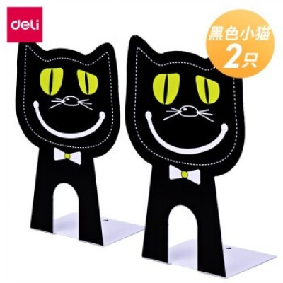得力70453 黑色176mm卡通猫创意金属铁书立架 办公书靠2片/付 书挡