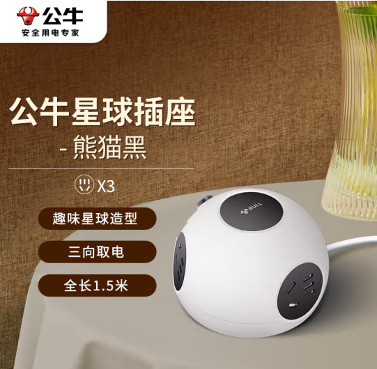 首页 > 建筑建材 > 开关插座 > 公牛(BULL)星球星际插座/插线板/插排/排插/拖线板 半球型 3位总控 全长1.5米 GNV-U103Q 熊猫黑 (zhyghf_221712154)SKU:yzwhyp885131