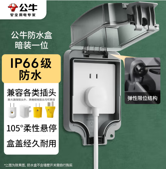 公牛(BULL)开关插座 86型防水开关面板盒防水罩插座浴室防水盒 F05 暗装一位 (zhyghf_221712210)SKU:yzwhyp885135