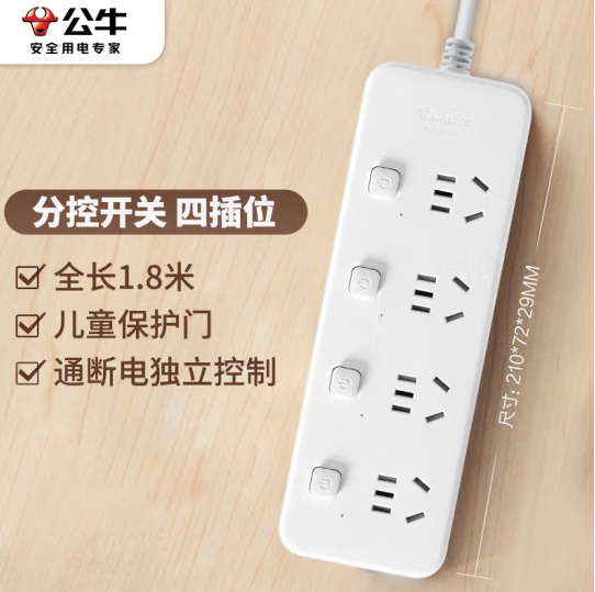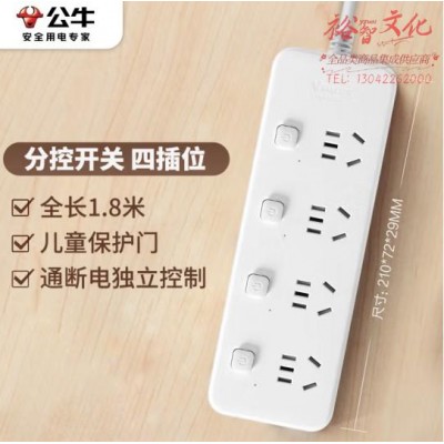 公牛(BULL) GN-B2043 拖线板 4位分控全长1.8米 独立开关 (zhyghf_221712108)SKU:yzwhyp885151