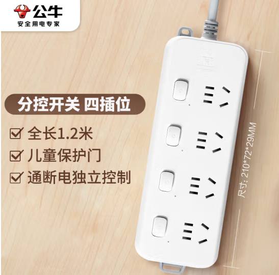 首页 > 建筑建材 > 开关插座 > 公牛(BULL)分控插座/插线板/插排/排插/接线板/拖线板 GN-B3043 4位分控全长1.2米 独立开关 (zhyghf_221712209)SKU:yzwhyp885155