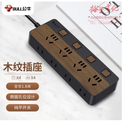 公牛(BULL)新国标插座8位分控1.8米 黑色木纹 GN-R1443 (zhyghf_221712027)SKU:yzwhyp885169