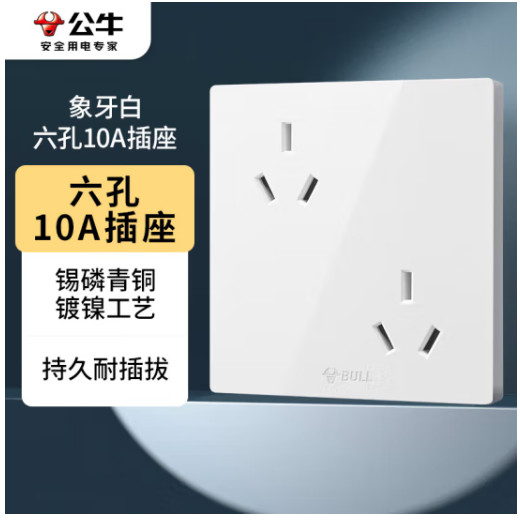 公牛(BULL)开关插座 G39系列 六孔10A插座86型插座面板 G39Z233 白色 (zhyghf_221712293)SKU:yzwhyp885194