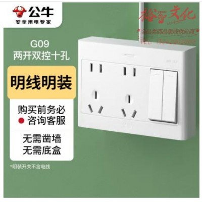 BULL/公牛 双联二三级 二位双控开关插座 G09E634S 明装 1个 销售单位:个 (zhyghf_221712324)SKU:yzwhyp885212