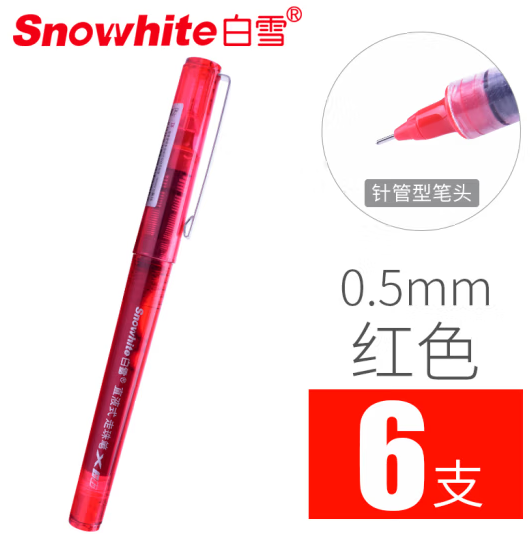 首页 > 办公用品 > 文具 > 白雪(snowhite)红笔签字笔红色中性笔教师专用批改老师学生纠正红色水笔 X66针管型0.5mm红色6支 (zhyghf_23099680)SKU:yzwhyp885363