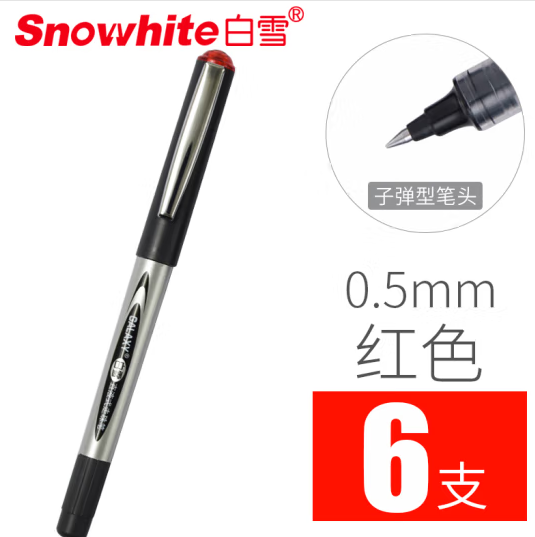 首页 > 办公用品 > 文具 > 白雪(snowhite)红笔签字笔红色中性笔教师专用批改老师学生纠正红色水笔 PVR155子弹头0.5mm红色6支 (zhyghf_23099676)SKU:yzwhyp885366