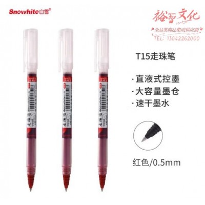 首页 > 办公用品 > 文具 > 白雪(snowhite) 直液笔0.5中性笔速干直液式走珠笔学生签字笔水笔黑色考试用笔 子弹头T15 10支/盒 红色 (zhyghf_23099727)SKU:yzwhyp885401