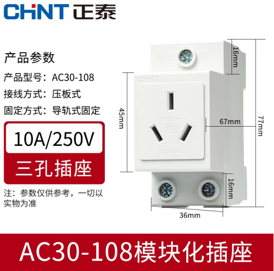正泰(CHNT)AC30-108 插座模数化空开导轨插座箱配电 三孔10A(zhyghf_221713624)SKU:yzwhyp885635