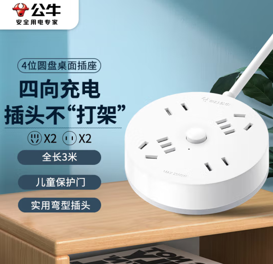 首页 > 建筑建材 > 开关插座 > 公牛(BULL)插座/插线板/插排/排插/拖线板 圆形插座4位总控 全长3米 GN-R2220 (zhyghf_221712161)SKU:yzwhyp885647