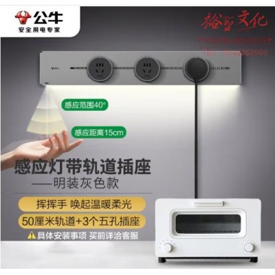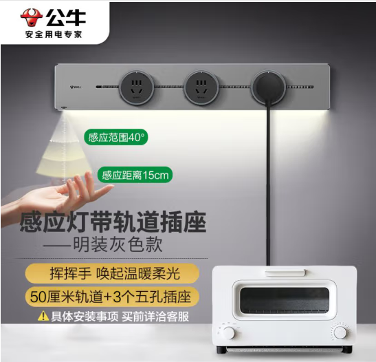公牛(BULL)明装 灯带轨道插座 可移动墙壁插座壁挂式50厘米轨道 3个五孔插座灰色 (zhyghf_221711832)SKU:yzwhyp885690
