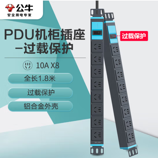 公牛(BULL)PDU机柜插座/插线板/插排 8位总控全长1.8米 GNE-108E (zhyghf_221711943)SKU:yzwhyp885692