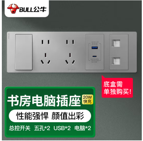 首页 > 建筑建材 > 开关插座 > 公牛(BULL) 开关插座 GTE系列 10A五孔插座USB插座Type-C20W快充插座电脑插座带开关GTE604A灰色(底盒需另购) (zhyghf_221711883)SKU:yzwhyp885723