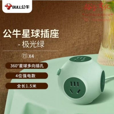 公牛(BULL)星球星际插座 球型 4位总控 全长1.5米 GNV-U104Q极光绿 (zhyghf_221712075)SKU:yzwhyp885727