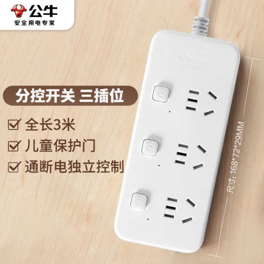 首页 > 建筑建材 > 开关插座 > 公牛(BULL)新国标分控插座/插线板/插排/排插/接线板/拖线板 GN-B2033 3位分控全长3米 独立开关 (zhyghf_221712167)SKU:yzwhyp885730