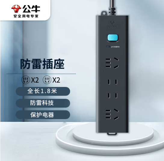 公牛(BULL)GN-H5220防雷插座/插线板 4位总控全长1.8米 (zhyghf_221712211)SKU:yzwhyp885783