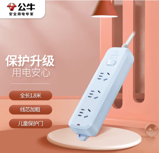 公牛(BULL)晴空蓝插座/插排GN-B8030H 3位总控全长1.8米 (zhyghf_221712238)SKU:yzwhyp885784