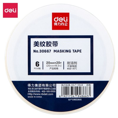 得力30667美纹纸胶带20mm*20y*145um(白色)(6卷/筒)