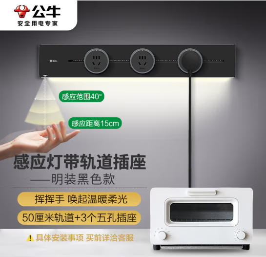 首页 > 建筑建材 > 开关插座 > 公牛(BULL)明装 灯带轨道插座 可移动墙壁插座壁挂式/插线板/接线板 多功能 50厘米轨道 3个五孔插座黑色 (zhyghf_221711833)SKU:yzwhyp885827