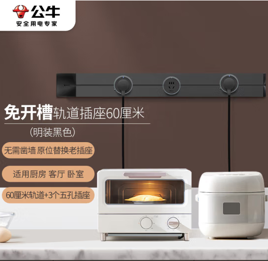首页 > 建筑建材 > 开关插座 > 公牛(BULL)可移动墙壁挂式轨道插座/插线板/接线板 多功能明装壁挂款60厘米 3个磨砂适配器 黑色 (zhyghf_221711836)SKU:yzwhyp885828