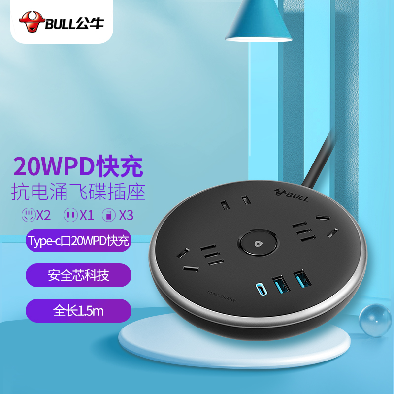 公牛 20W PD快充插座 抗电涌抗浪涌插线板 3位USB总控全长1.5米 GN-R612USKU:yzwhyp885868