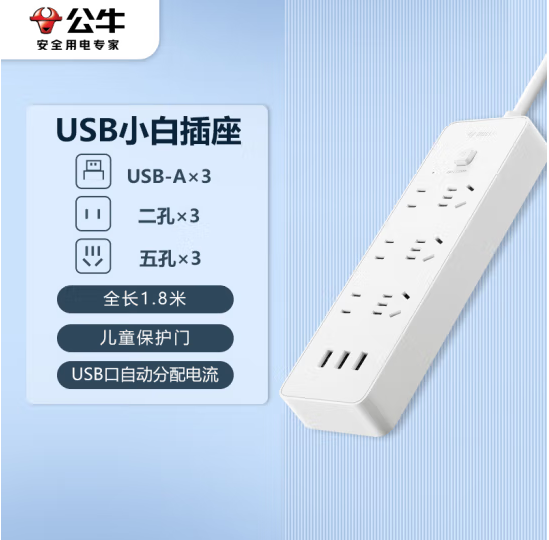 首页 > 建筑建材 > 开关插座 > 公牛(BULL)GN-B333U 6孔全长1.8米带保护门 USB插座/插线板/插排/排插/ 3usb接口 (zhyghf_221712054)SKU:yzwhyp885874