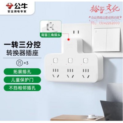 公牛(BULL)转换插头/品字形一转三插座/无线转换插座/电源转换器 适用卧室、厨房 3位分控插座 GN-98033 SKU:yzwhyp885878