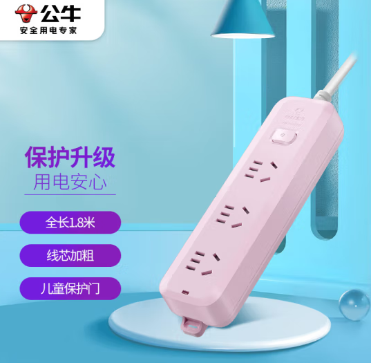 公牛(BULL)茱萸粉插座/插排GN-B8030H 3位总控全长1.8米 (zhyghf_221712239)SKU:yzwhyp885879