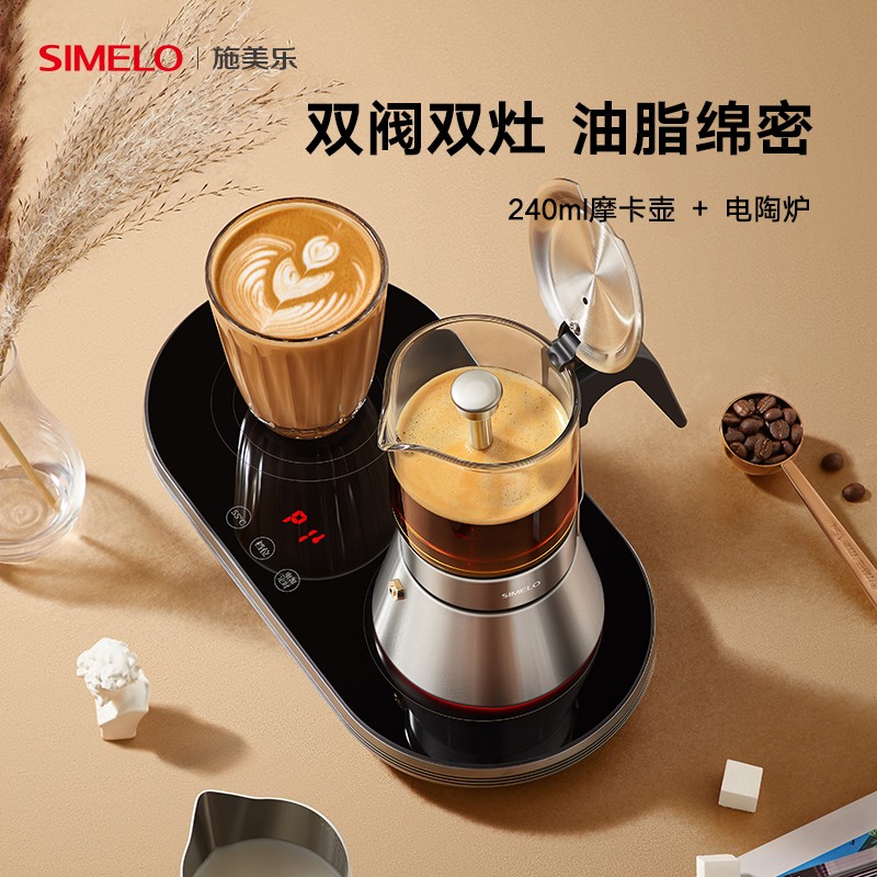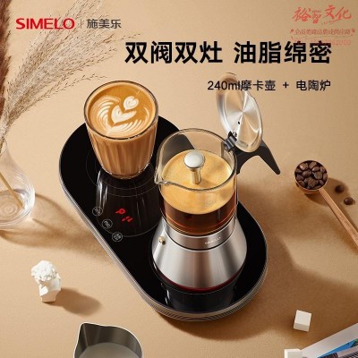 施美乐 摩卡壶双阀煮咖啡家用不锈钢 电陶炉手冲咖啡壶套装(240ML摩卡壶 双灶电陶炉)(zhyghf_760300018)SKU:yzwhyp885891