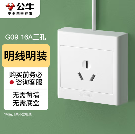 首页 > 建筑建材 > 开关插座 > 公牛(BULL) 明装开关插座 G09系列 16A三孔空调插座 86型插座面板 G09Z104S (zhyghf_221712402)SKU:yzwhyp885937