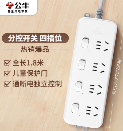 首页 > 建筑建材 > 开关插座 > 公牛(BULL)GN-B3043 4位分控全长1.8米 独立开关 新国标分控插座/插线板/插排/排插/接线板/拖线板(zhyghf_330201712)SKU:yzwhyp885942